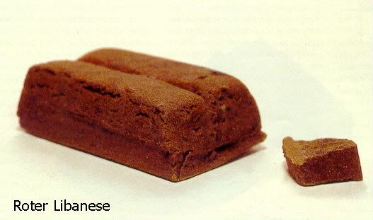 Haschisch von Hand vor- und dann maschinell nachgepreßt. Wie dem